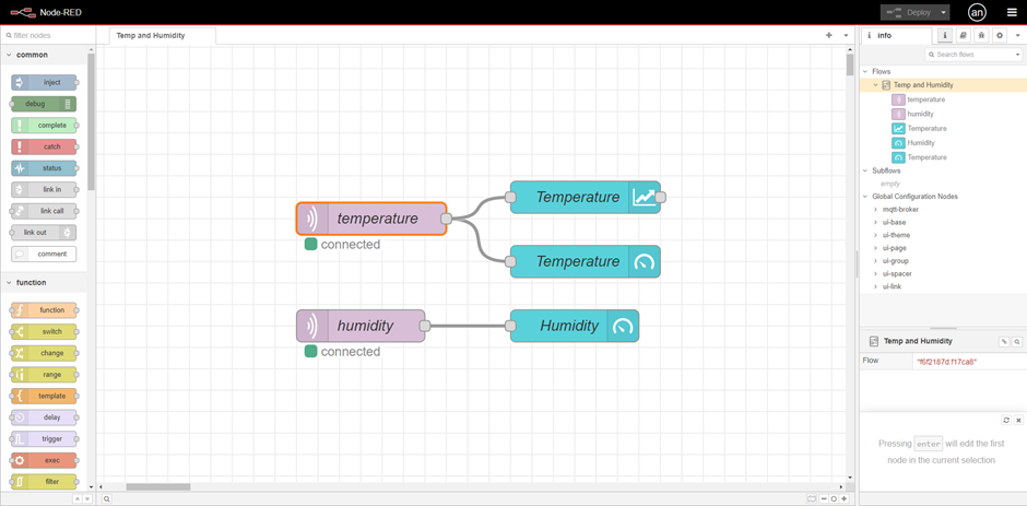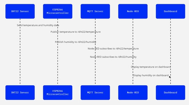 By following this setup, you can build a robust and efficient system for monitoring environmental conditions using a DHT22 sensor and ESP8266 microcontroller. Leveraging MQTT for lightweight communication and Node-RED for intuitive visualization makes this project a practical and scalable solution for IoT applications.
